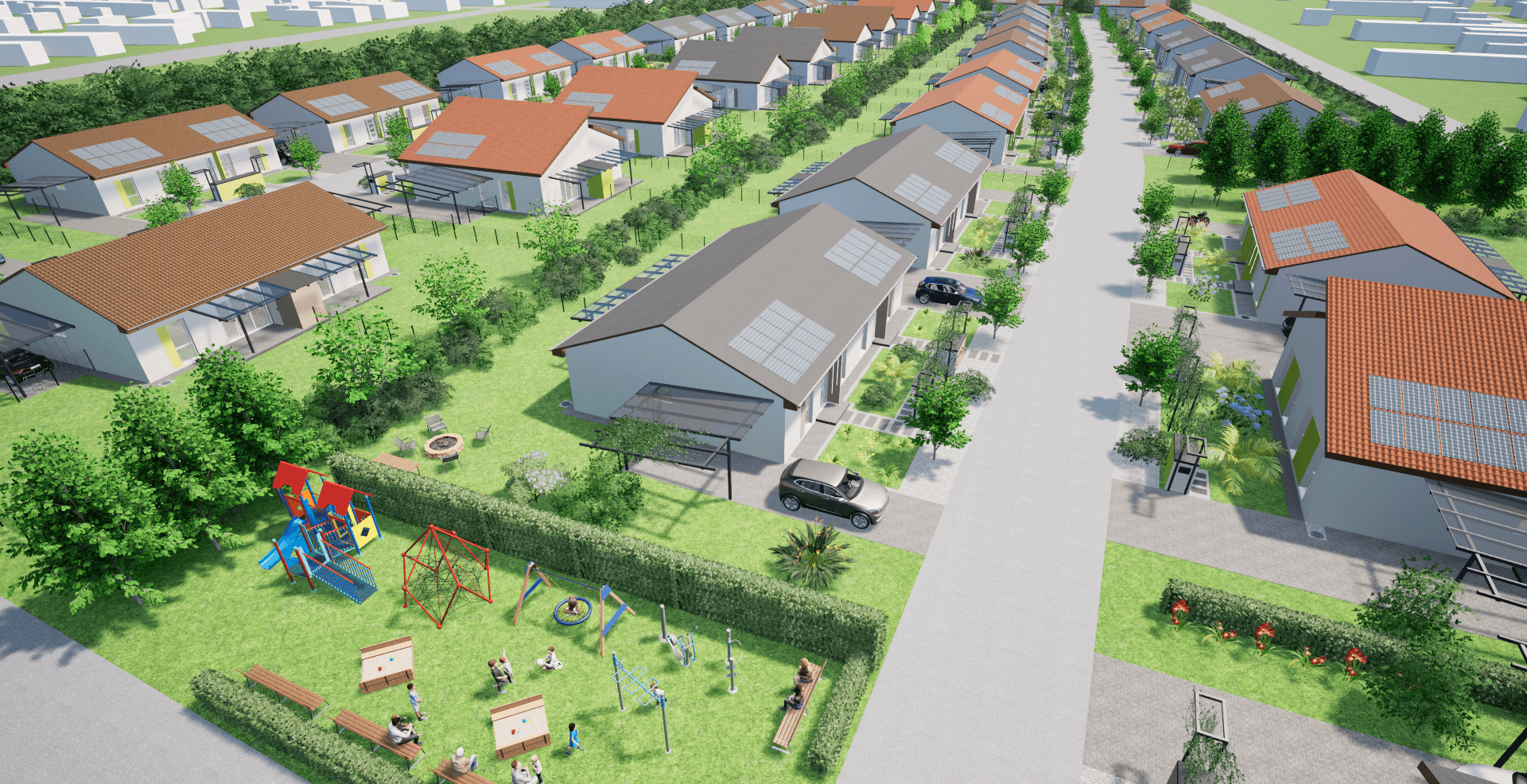 - Saját elő- és hátsó kert minden otthonhoz
